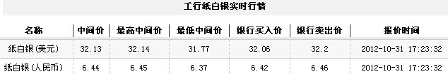纸白银价格今日收盘反弹走高(2012年10月31日)